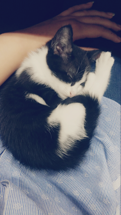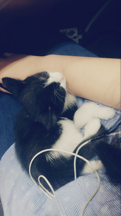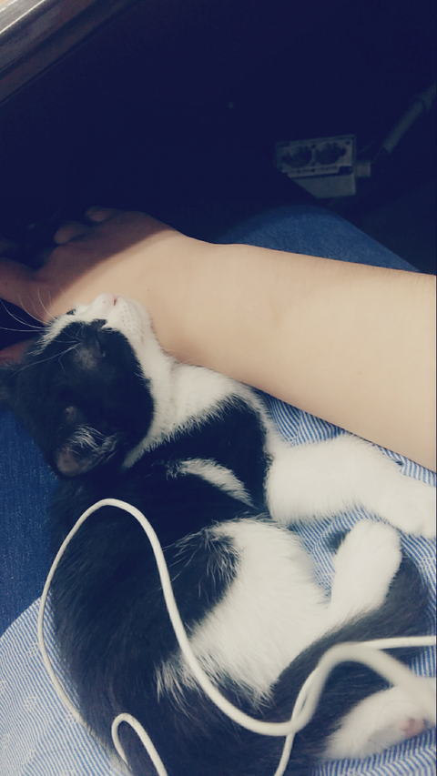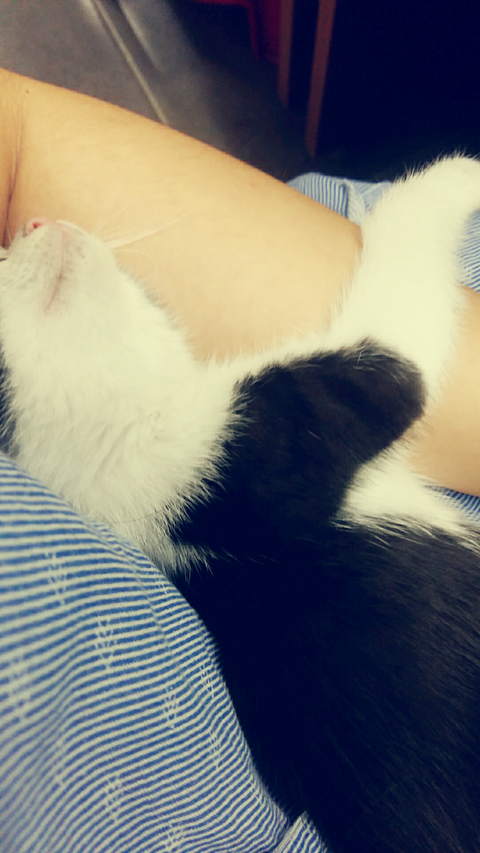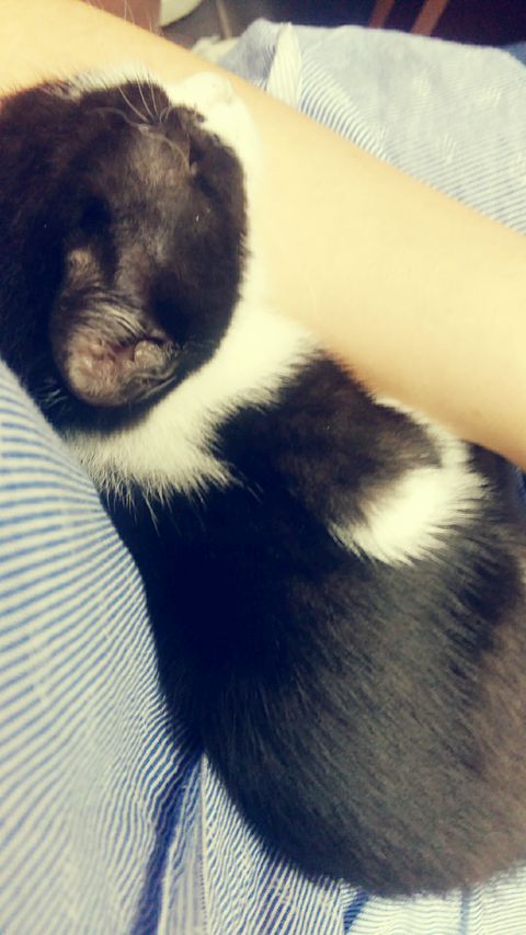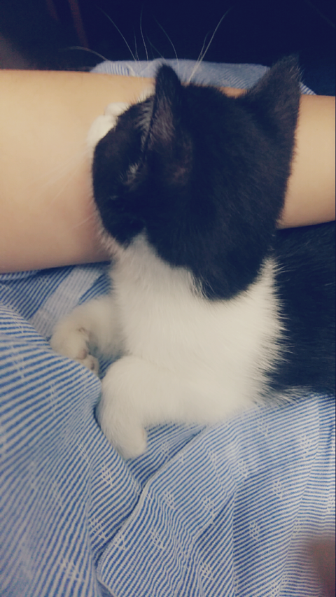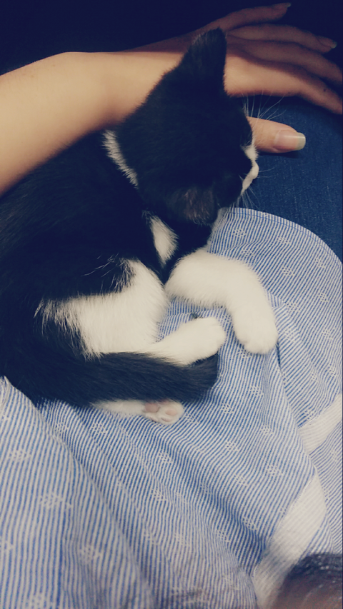 학원냥이가 새끼를 넷 낳았어여 그중한아이 안아주니 고롱고롱 잘만 자네요 ㅜ.ㅜ