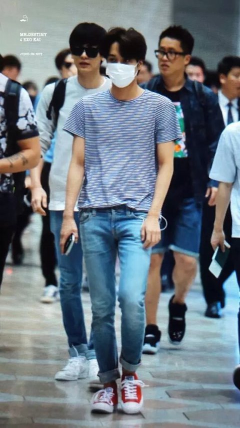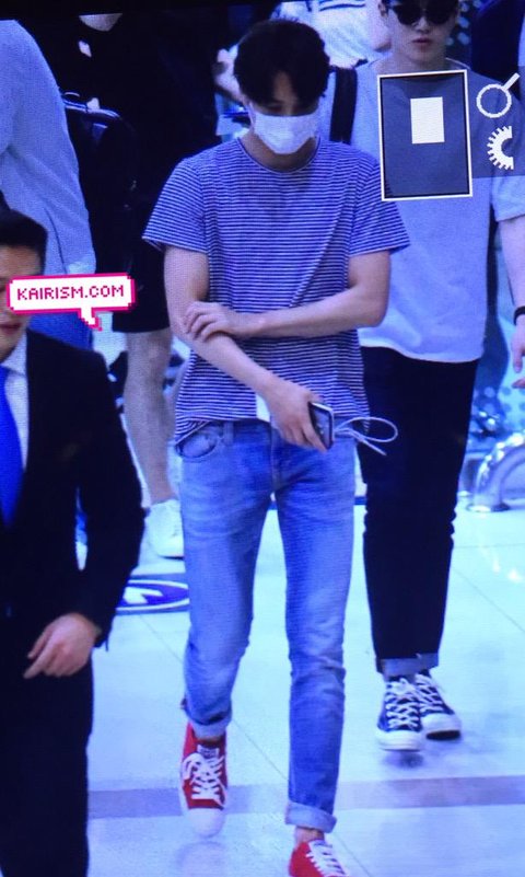 카이 빨간 컨버스 스니커즈에 오늘도 핫바디ㅜㅜ