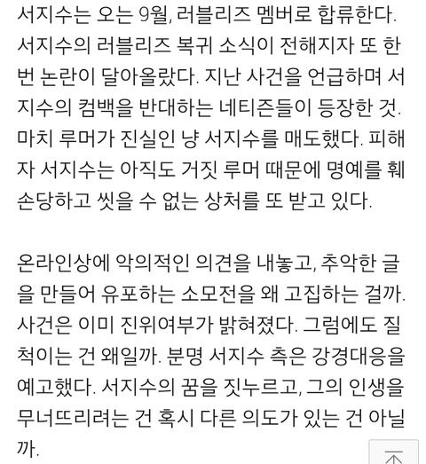 서지수 루머 믿는분들은 이 기사 꼭 보시길!