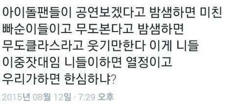 저평가되고 그들은 좋아하는 일명 빠순이들은 무개념 취급을 받고..