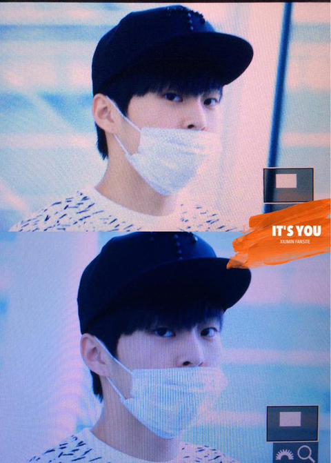 시우민 동방모자쓰고 한국오다>.<