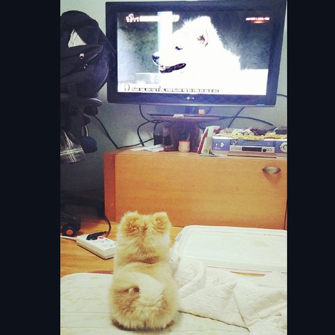 크림아~~라고 불렀더니 잠깐 뒤돌아보고 다시 동물농장 초 집중하는 크림이