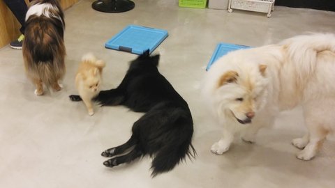 큰개들도 잘 쫓아 다니고 다른 포메 친구들 만나면 반갑다고 뛰어다니면서 신나게 놀아요