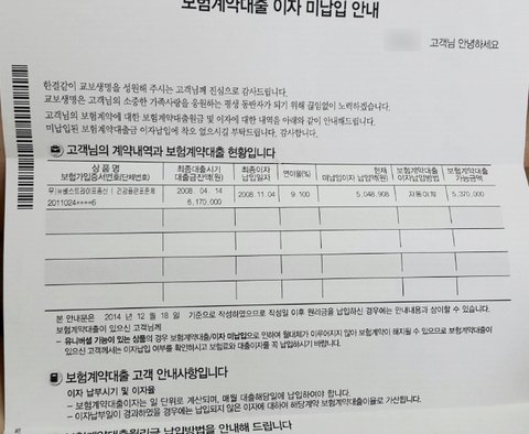 ▼아래는 아빠이름으로 받아진 대출미납고지서입니다.