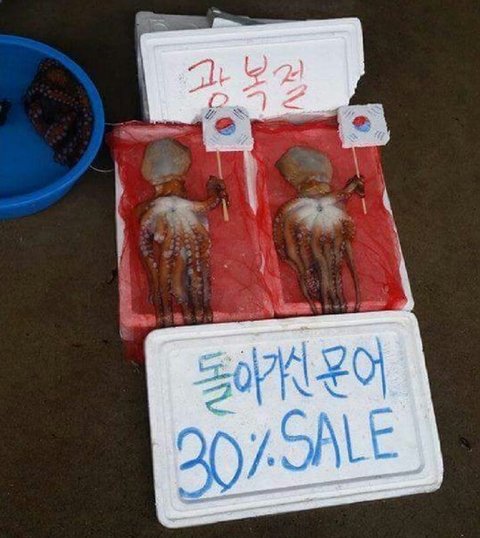 거기다 문어가 태극기 들고 있음ㅋㅋ