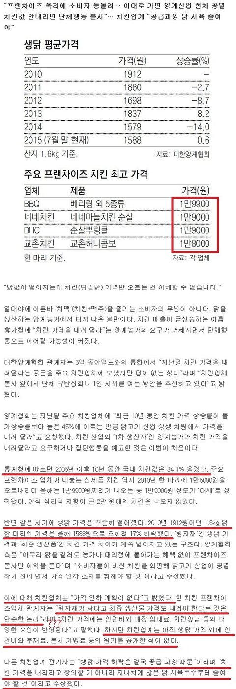닭값이떨어지는데 치킨가격은 오르는이유??