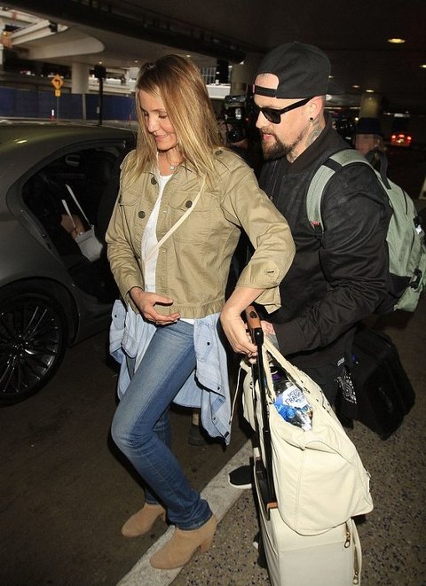 최근 남편 벤지 메이든과 공항에서 사진 찍힌 카메론 디아즈