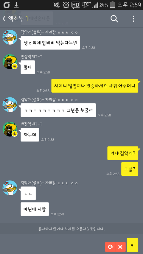 @@@악개톡 반장샤퀴 걸리니깐 추방@@@