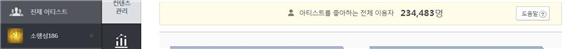 노래는 듣지만 인지도는 쌓이지 않는 현실과 설상가상 24만을 향하던 우리의 이용자들이 서버 업데이트와 함께 하루아침에 6만이 되며... 심지어 갈수록 줄고있어......