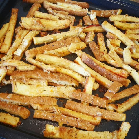 남은 자투리 식빵으로는 마늘소스 입혀서 마늘 러스크로 변신!