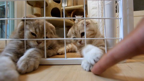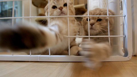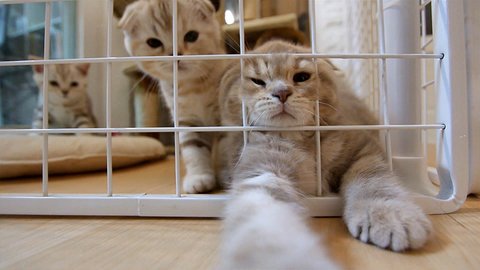 케이지 앞을 지나가던 집사아저씨를 발견한 라온이
