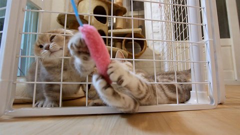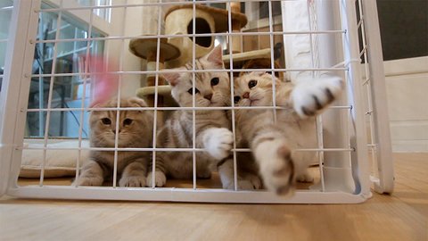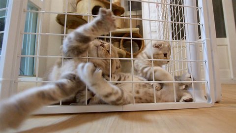 네트망에 걸려 맘껏 놀지 못하니까 슬슬 짜증이 밀려오는 애기들