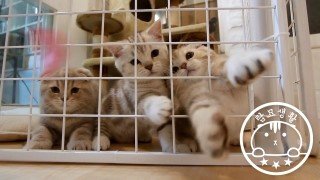 아저씨가 놀아줄 낌새를 보이자 저멀리서 자고있던 소울이도 냉큼 내려오네요.동공 커진 삼둥이들 ㅎㅎ
