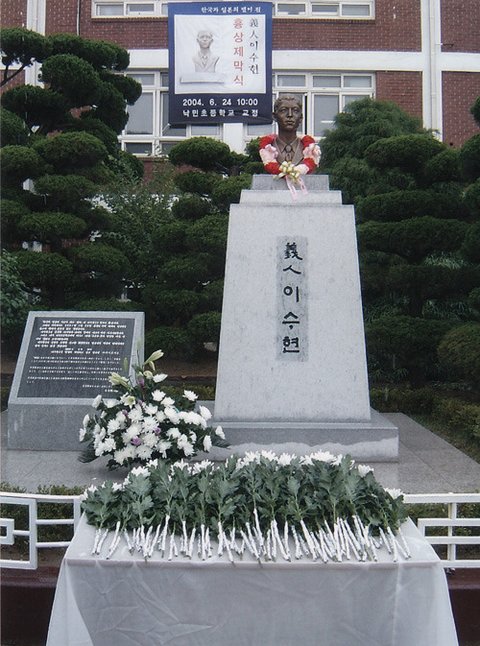 故이수현씨가 졸업한 부산 낙민초등학교의 흉상비.