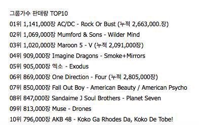 전세계 그룹가수 앨범 판매량 top10 (엑소 5위)