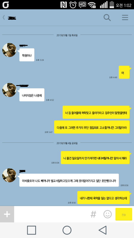 발한다고 말했는데 들어와서 지 옷 들고 사라졌더군요.. 그래서 밑에 카톡파일 같은 상황입니다.