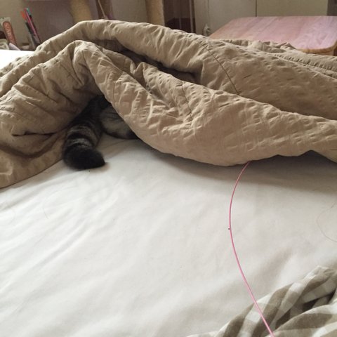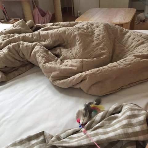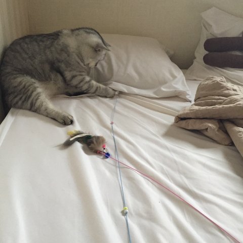 닝겐이랑 침대에서 가장좋아하는 장난감 가지고 놀기