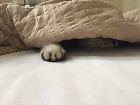 내내 기다리다 발로 들춰보니 ...자세를 잡고 누워있는