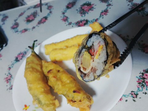 김밥을 튀김처럼 만듦.