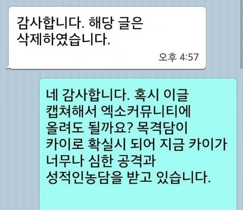 카이팬들 진상인게 그 호텔 목격담남자한테 문자까지보냄