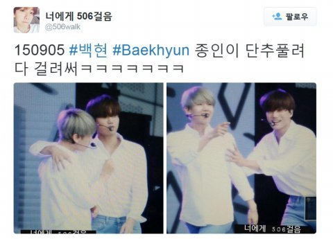 종인이 단추 풀려다 딱걸렸어ㅋ