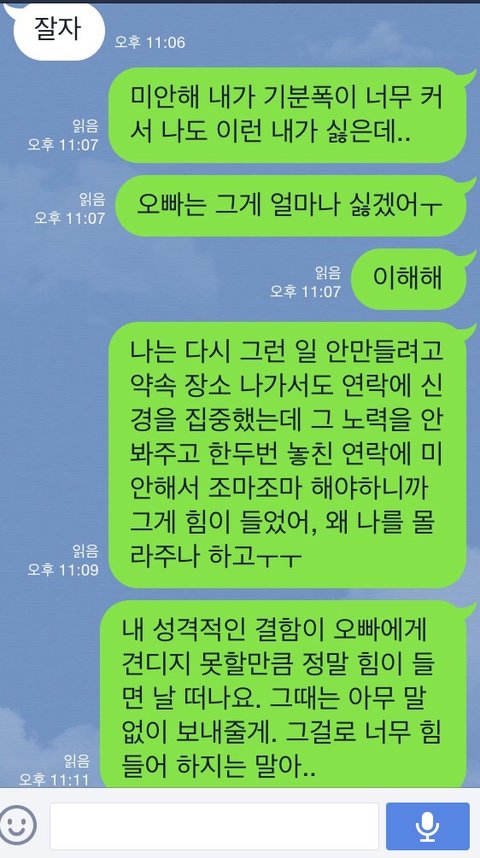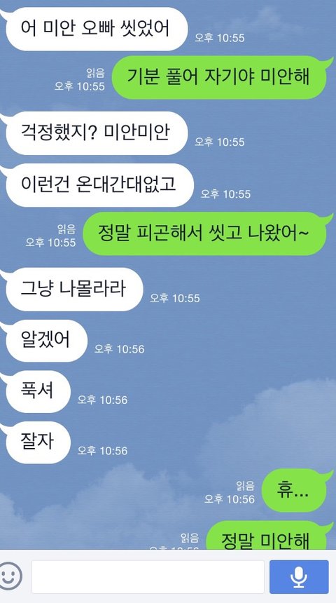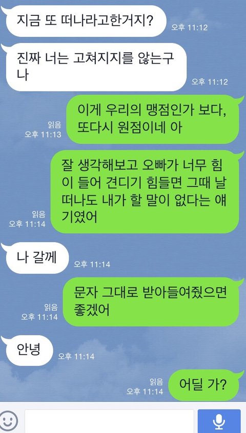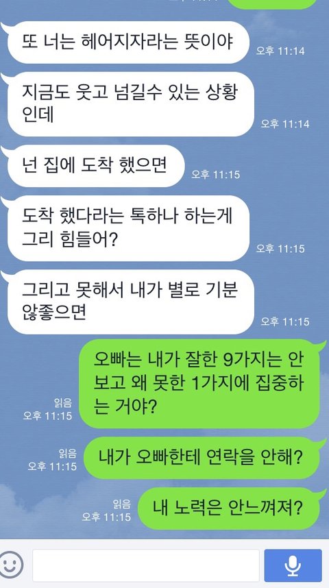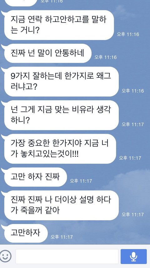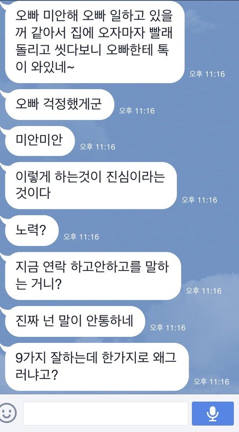 꼭 떨어져있는 동안 문자로 다투네요.