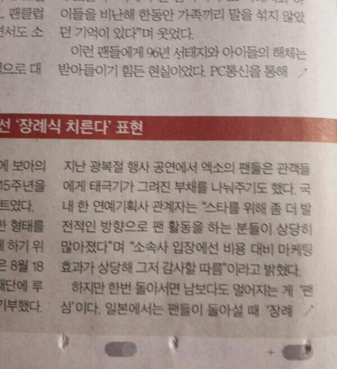 엑소팬들이 태극기부채 나눠준거 신문에 나왔다~~~