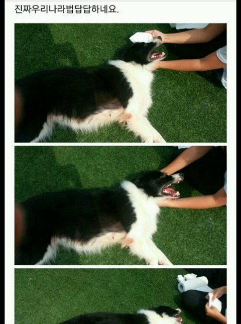 그런데도 지들은 다시 축구 하고 놀면서 공을 강아지 쪽으로 차고 그러니,