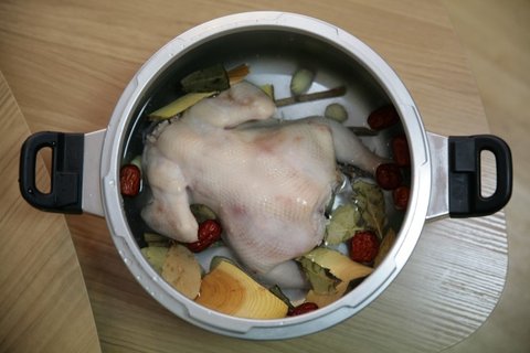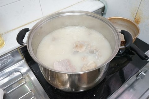 압력솥에 40분가량 그리고 솥에 꺼내어 한번 팔팔 끓여주면됩니다.
