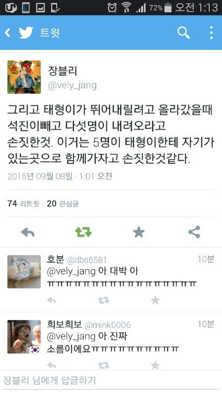 어제 12시에 V앱봤는데 졸라머리아프다 하..진짜 빅히트 이런건존.나잘만들어요;;;;;;재능에감탄;;;;;;진짜ㅋㅋㅋㅋㅋㅋㅋㅋㅋㅋ난어제 진짜아~무생각없이 와김태형 연기잘한다. 햇음 그 처음에피묻은손 덜덜떨때 ㅅㅂ 이랫음..아니근데진짜별생각없이보다가 마지막에 석진이가 찍은사진에 걔만있을때 ..?뭐야이러고 의문이들기시작햇는데 판보니까 진짜갖가지추측이있더라