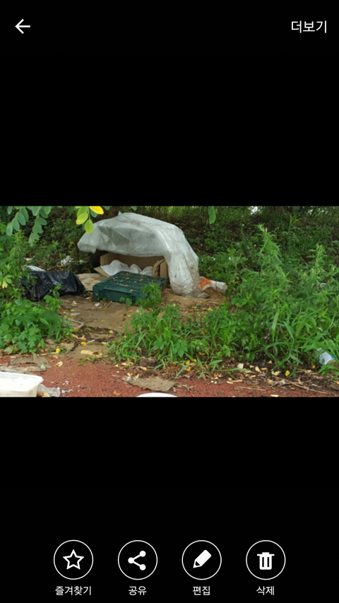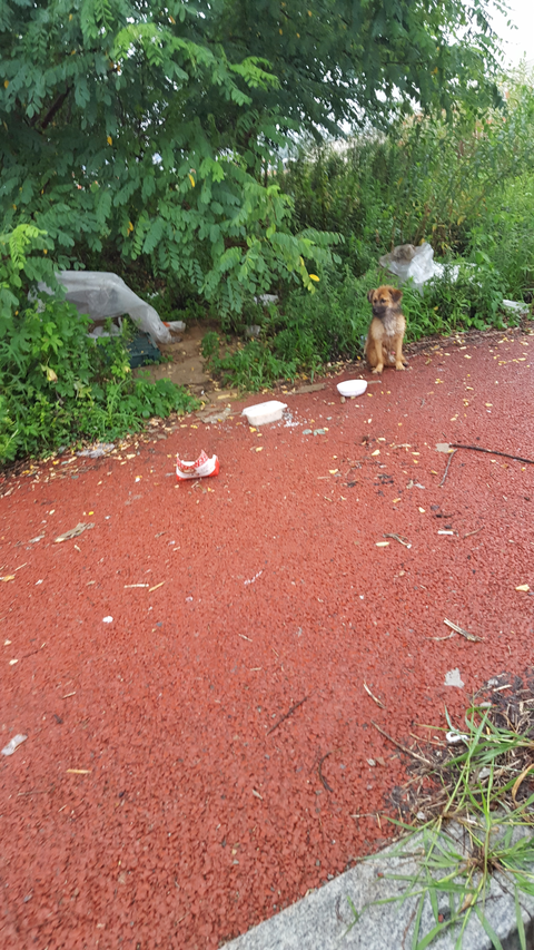 집도 없이 큰나무 나뭇잎으로만 비를 피하고있는 모습이 안쓰러워 상자와 비닐로 안식처도 만들어주었습니다
