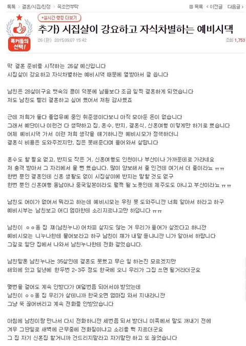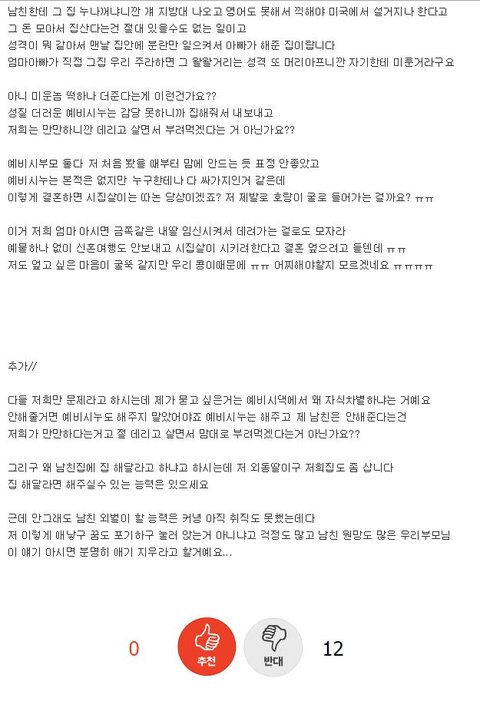 [어이없음주의]시집살이 강요하고 자식 차별하는 시댁