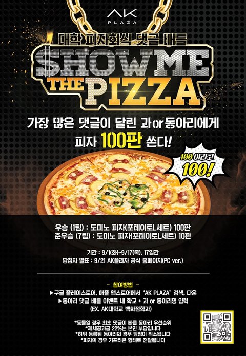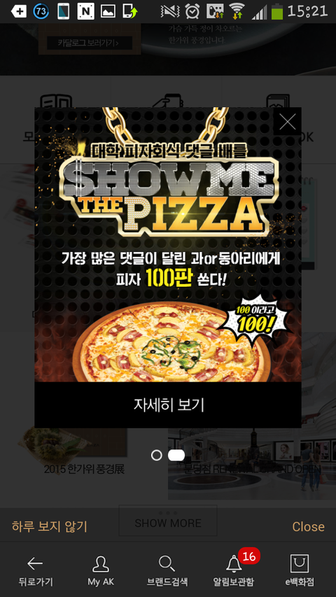 AK 플라자 앱을 여시면 바로 쇼미더 피자 이벤트 광고를 보실 수 있음