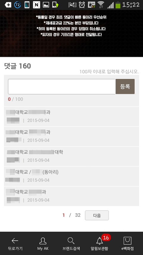 바로 페이지 밑에 학교 이름과 과 or 동아리 입력하고 등록 누르면 끝이라네요