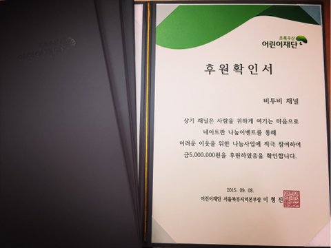 팬톡 기부 프로모션 결과에 따라 비투비 채널명으로 기부금 5,000,000원이 후원되었습니다.