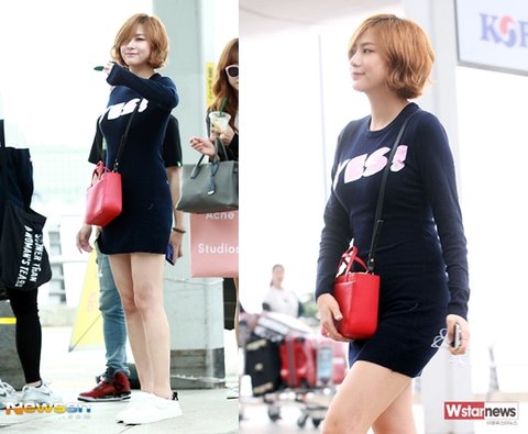 초밀착 + 초미니 니트 원피스에 빨간색 라베노바 크로스백 메고 몸매 자랑 중. Jpg