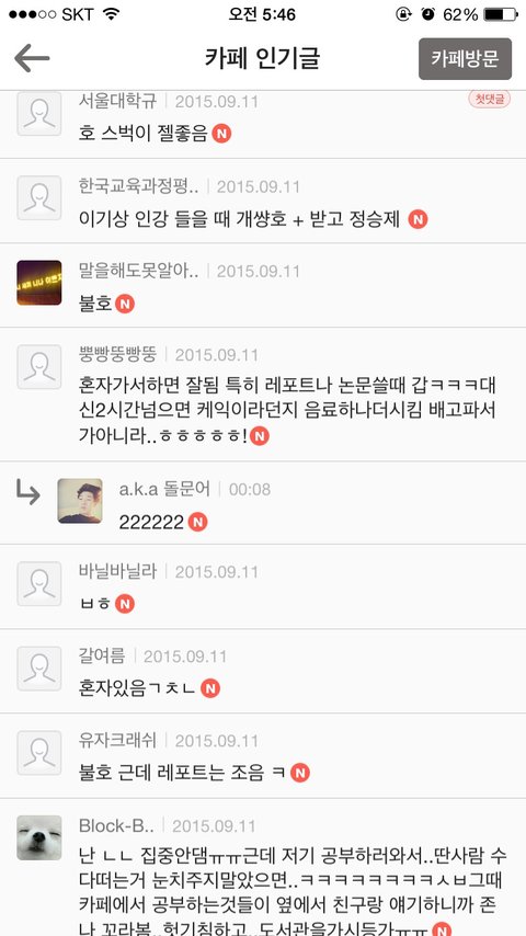 뭘하든 자기 자유지만 그렇게 시끄럽지도 않은데 무슨 도서관마냥 조용히.해달라는것들은 머리끄댕이 잡고싶음