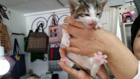 어제 저희 이모네 가게 싱크대에서 발견된 아기고양이를