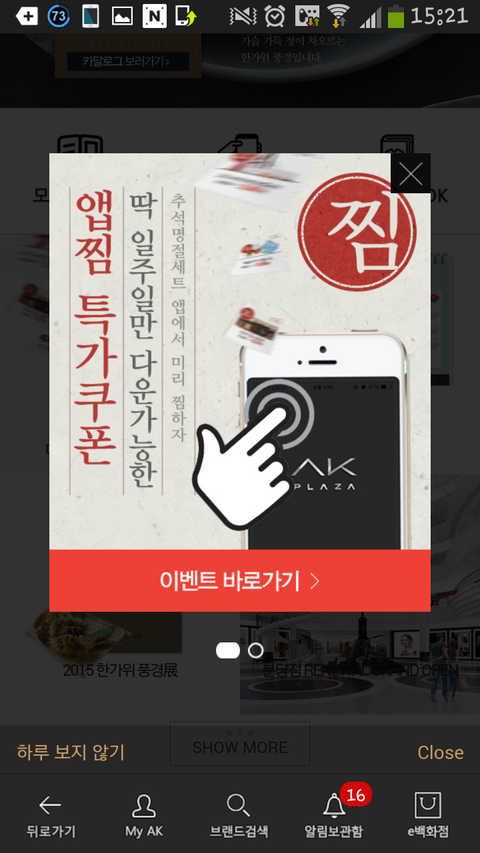 우선 AK플라자 앱을 다운받으시고 앱을 여세요
