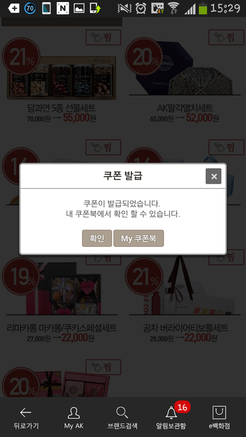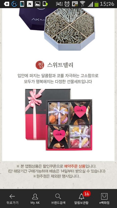 추석 명절세트를 앱에서 미리 찜해서 특가 쿠폰을 받는거예요~!!!