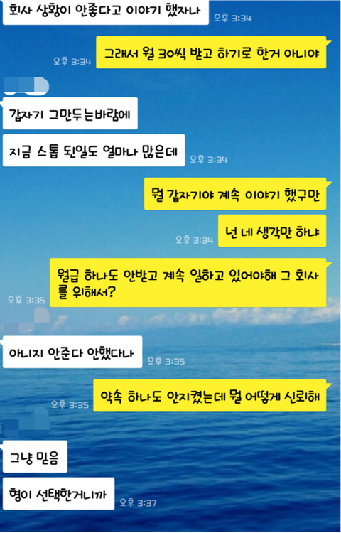 처음엔 되게 잘해줄 것처럼 이야기해서 믿었지.