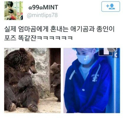 진짜 혼나는 아기 곰돌이랑 씽크로율 똑같다ㅋ