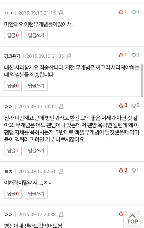 근데이것들로인해서 방탄소년단이나 개념아미분들에게도 욕하지말아줫으면해.. 무개념아미도 같은팬덤이긴해도 참뭐라설명하기 부끄러운 사람들이거든...