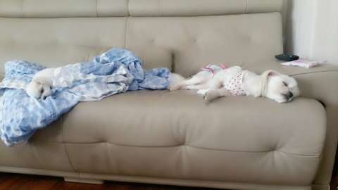 친구네 강아지는 5년되었는데, 생전 처음 새끼강아지를 봐서 그런지 앙쥬를 하루종일 쫓아다녔어요 ㅋㅋ