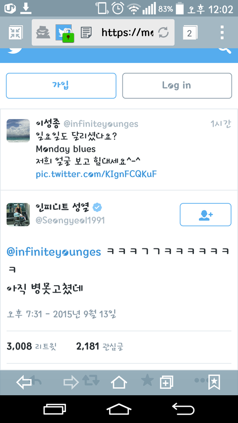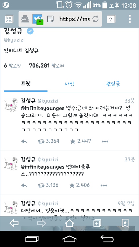 성열이 트윗!!!!+성규 답멘