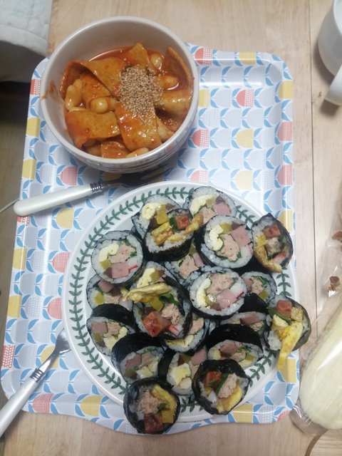 김밥 이쁘게 마는 법을 블로그로 배웠는데....머리와 손은 따로 노네요