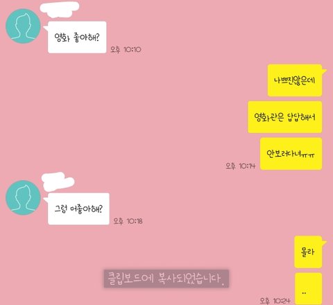 얘가 먼저 번호 따갔는데 영화 좋아하냐는거에서 직감 왔는데 내가 몰라.. 한 후로 읽씹하고 답없어 ㅆㅂ 내가 생각해도 너무 말 실수한거같아 아 어떡햌ㅋㅋㅋㅋㅋㅆㅂ 아미ㅣ친 미안함 ㅠㅠ 어떡하지