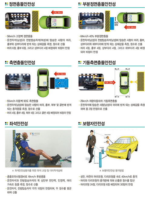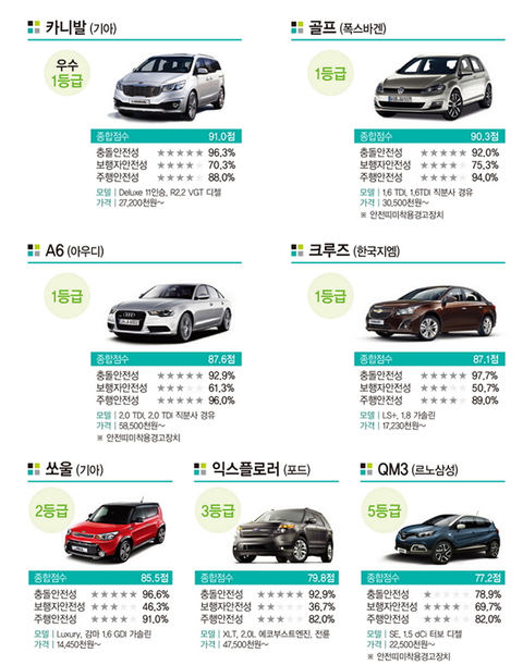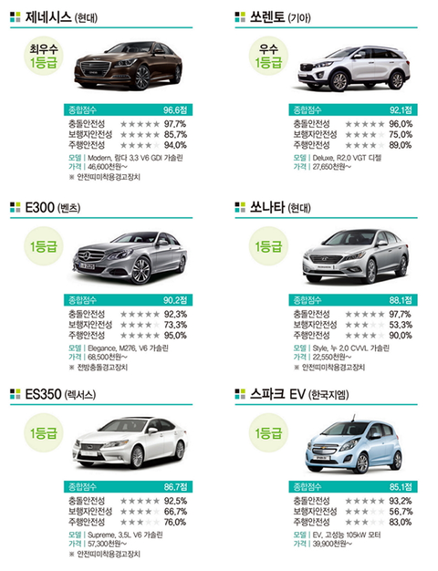 2014년도 자동차 안전평가 결과입니다! 국내차량에선 제네시스와 쏘렌토가 좋은 평가를 받았네요