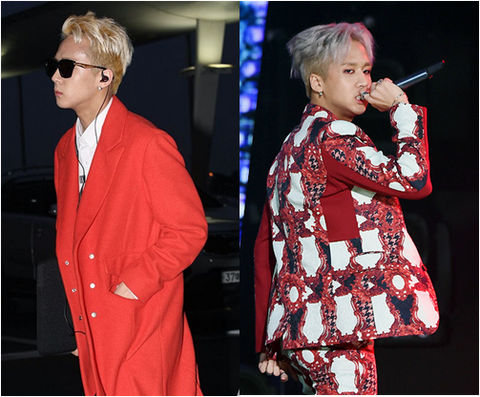 공항부터 무대까지 라비의 레드 사랑은 빠지는 데가 없음~