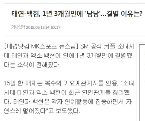 소녀시대 태연-엑소 백현, 수개월전 결별…지금은 ‘이별시대’